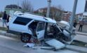Aydınlatma direğine çarpan otomobil hurdaya döndü
