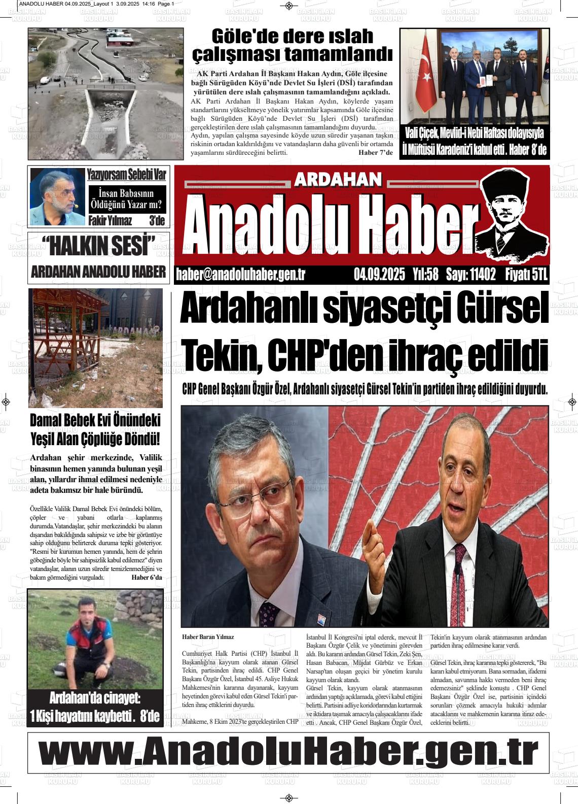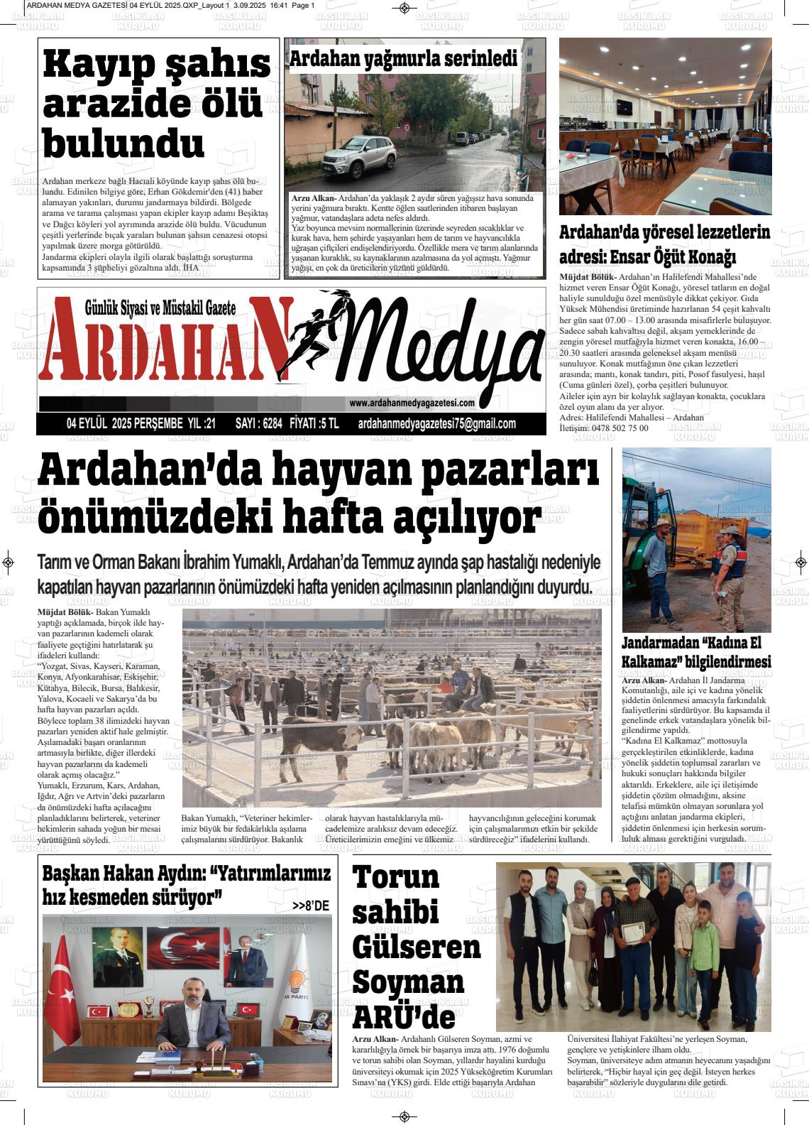 Ardahan Yerel Gazeteleri 27 Ocak 2026, Salı Günü Manşeti