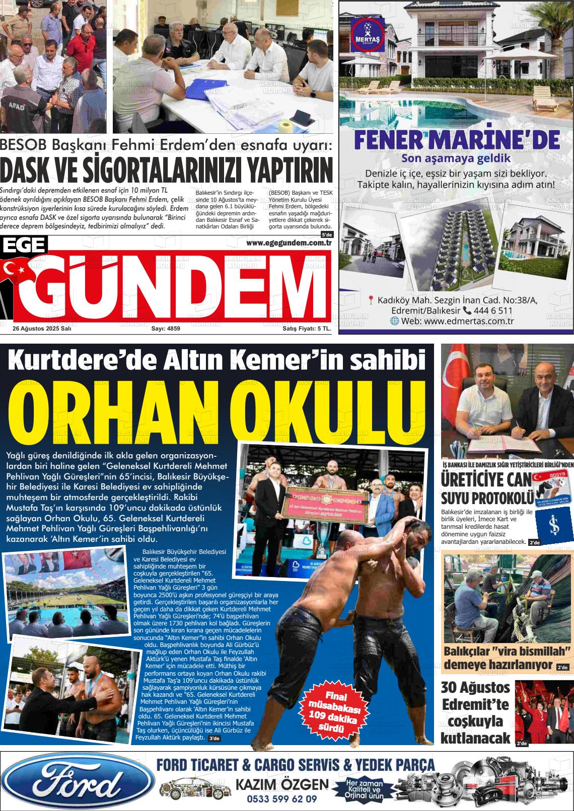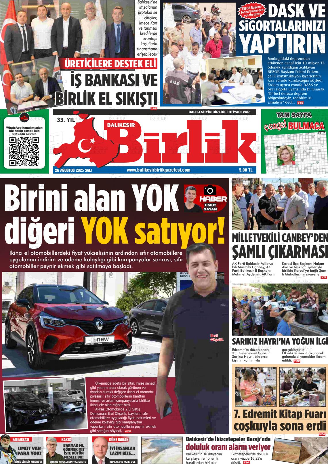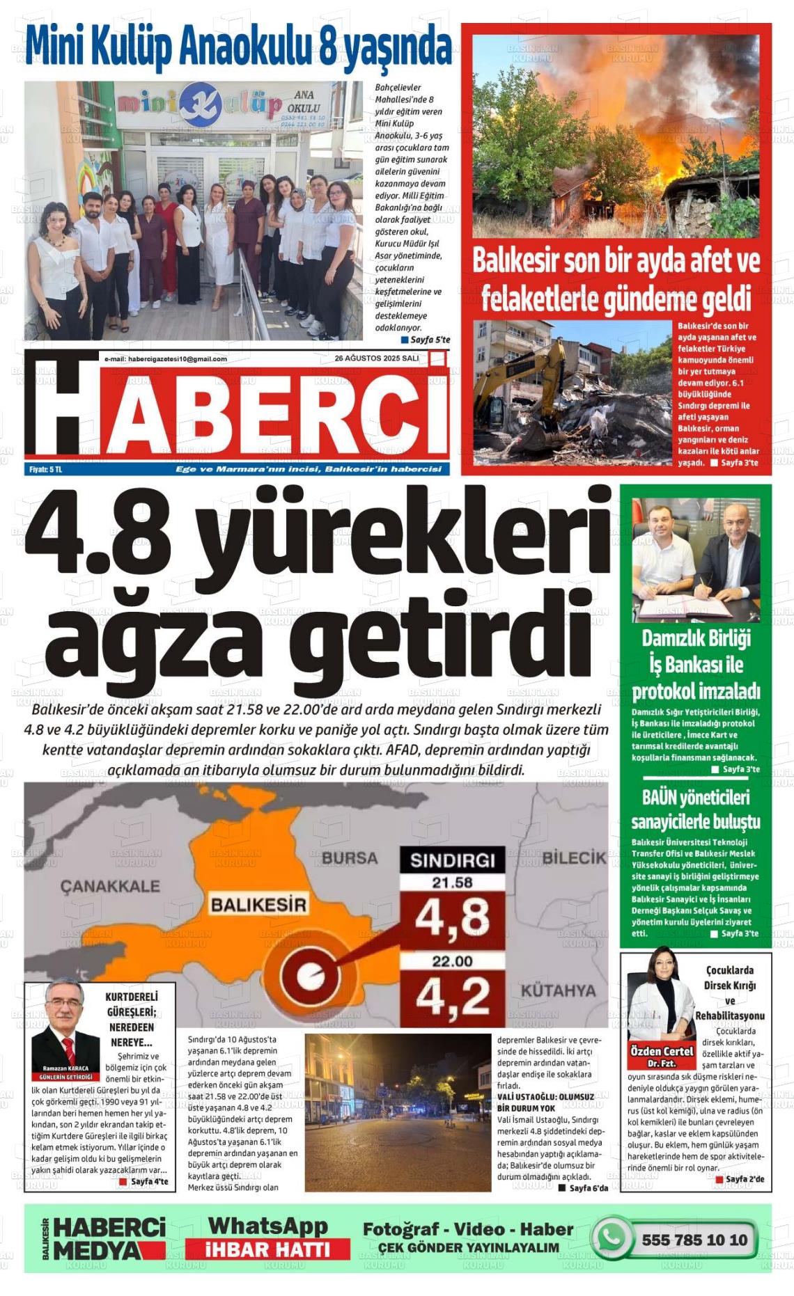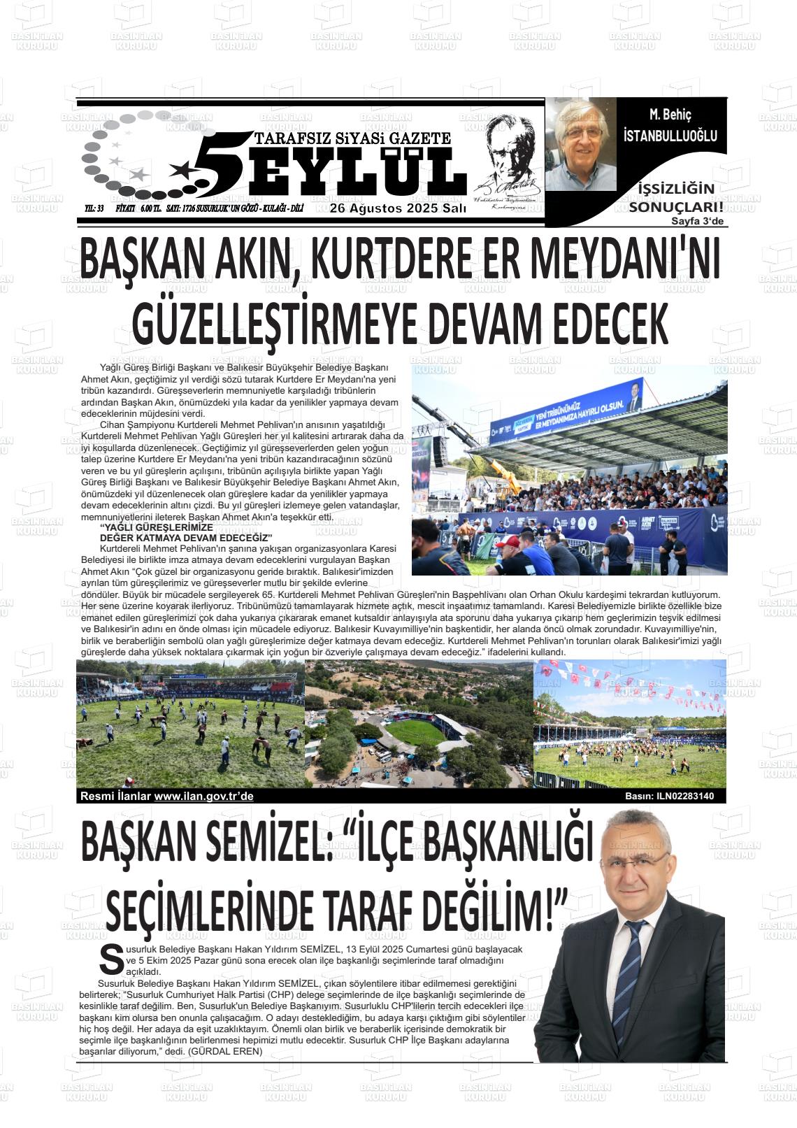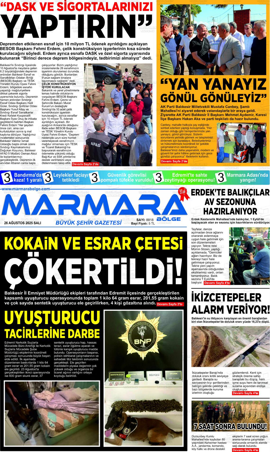 Balıkesİr Yerel Gazeteleri 27 Ocak 2026, Salı Günü Manşeti