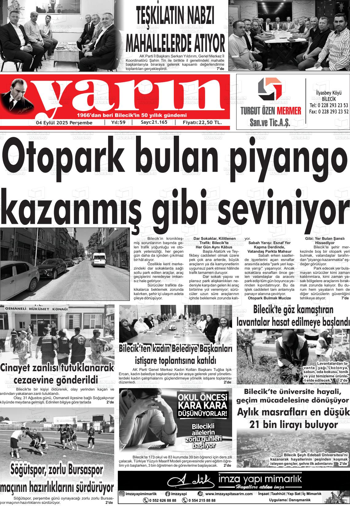 Bİlecİk Yerel Gazeteleri 02 Aralık 2025, Salı Günü Manşeti