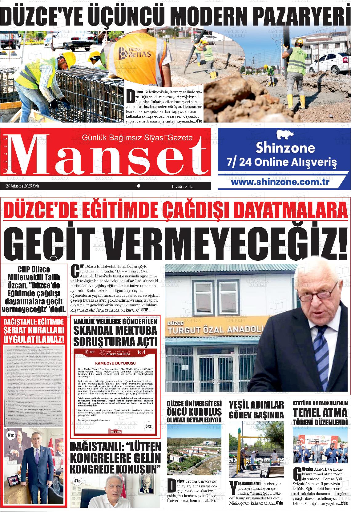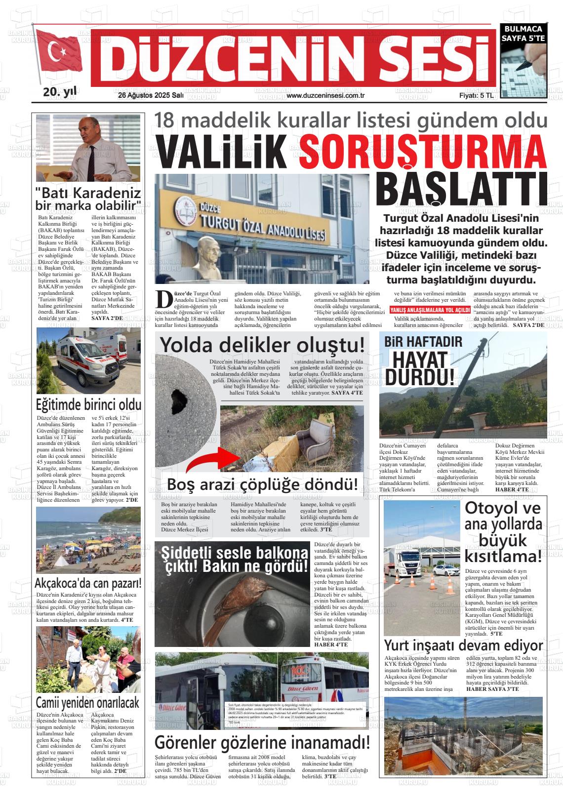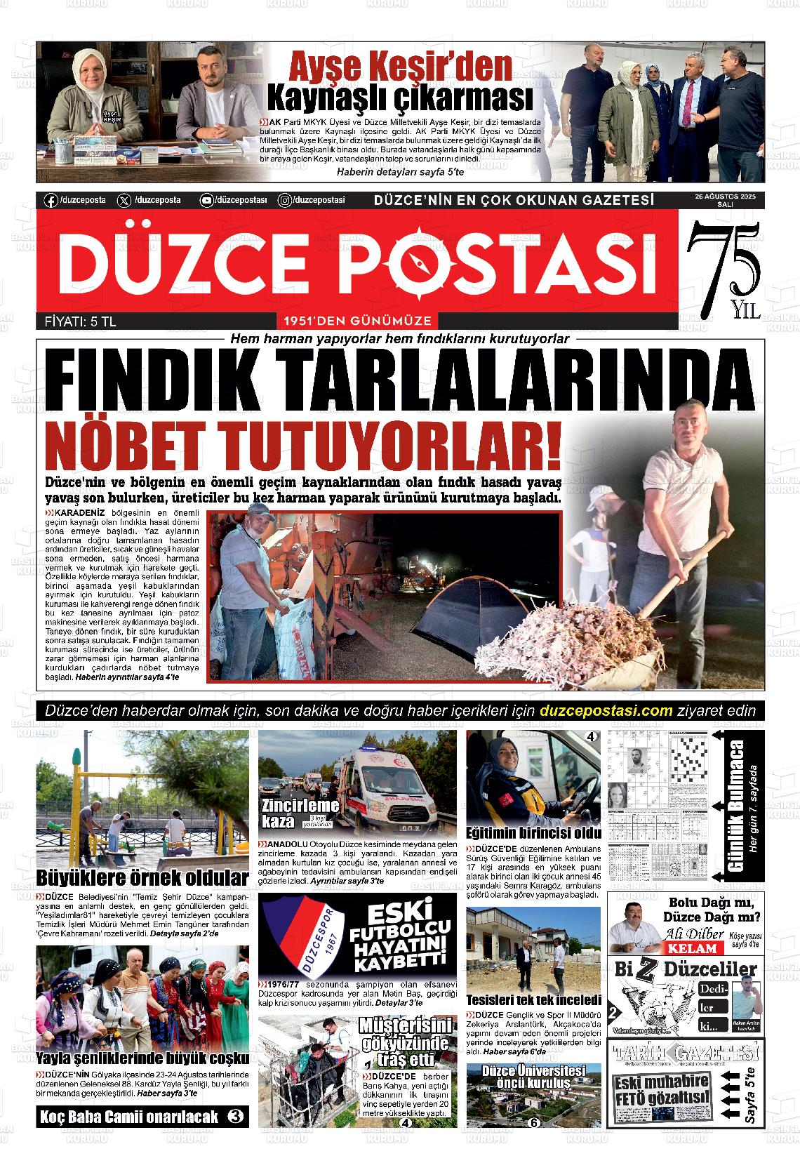 Düzce Yerel Gazeteleri 29 Ocak 2026, Perşembe Günü Manşeti