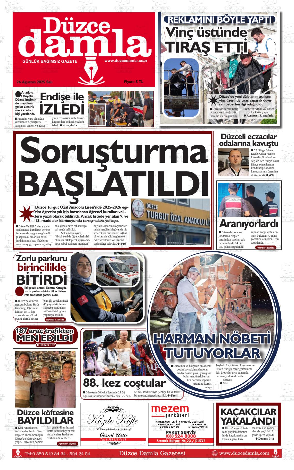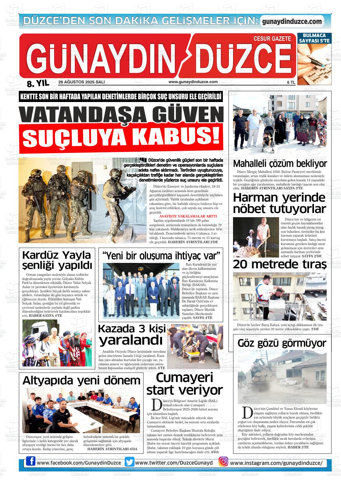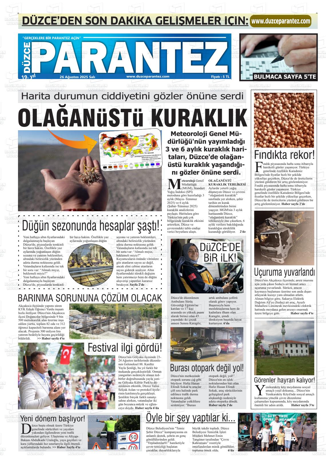 Düzce Yerel Gazeteleri 29 Ocak 2026, Perşembe Günü Manşeti