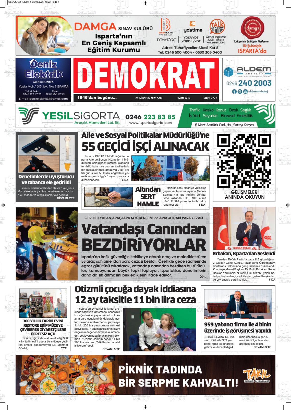 Isparta Yerel Gazeteleri 27 Ocak 2026, Salı Günü Manşeti