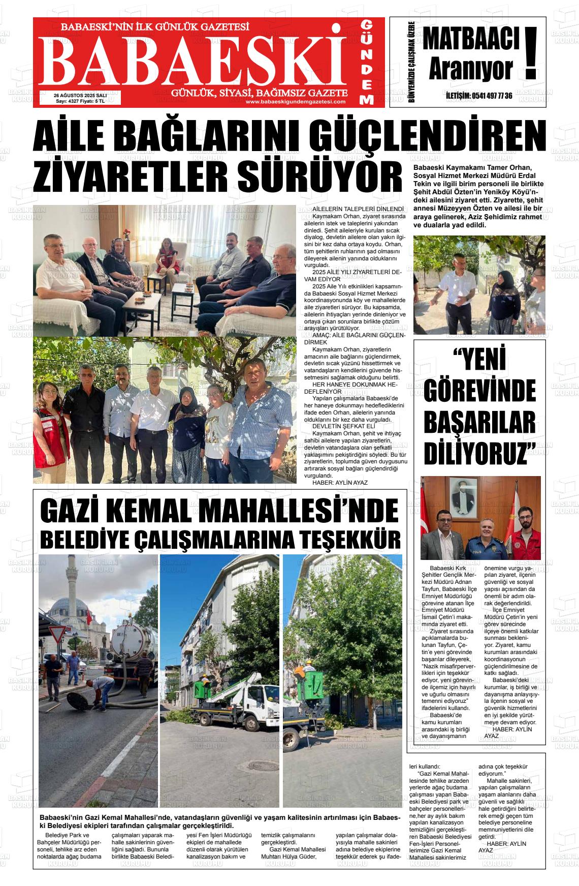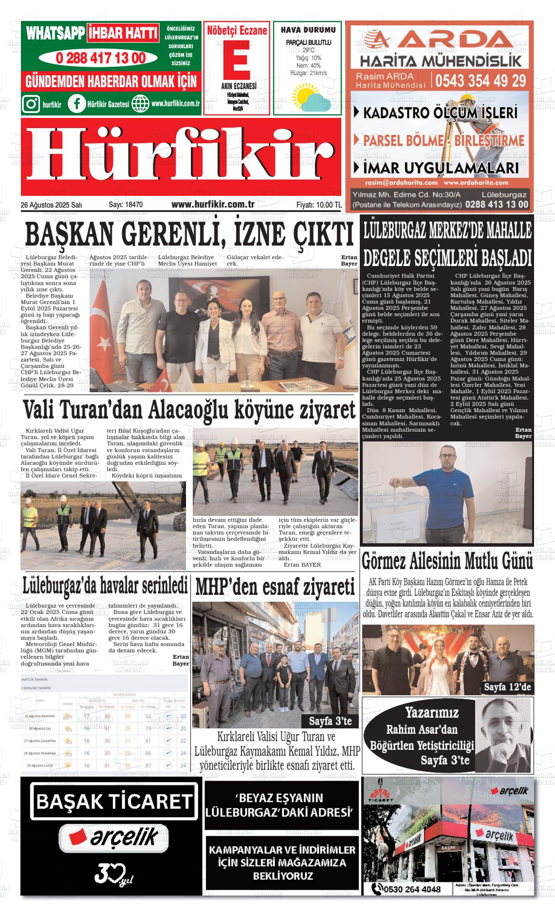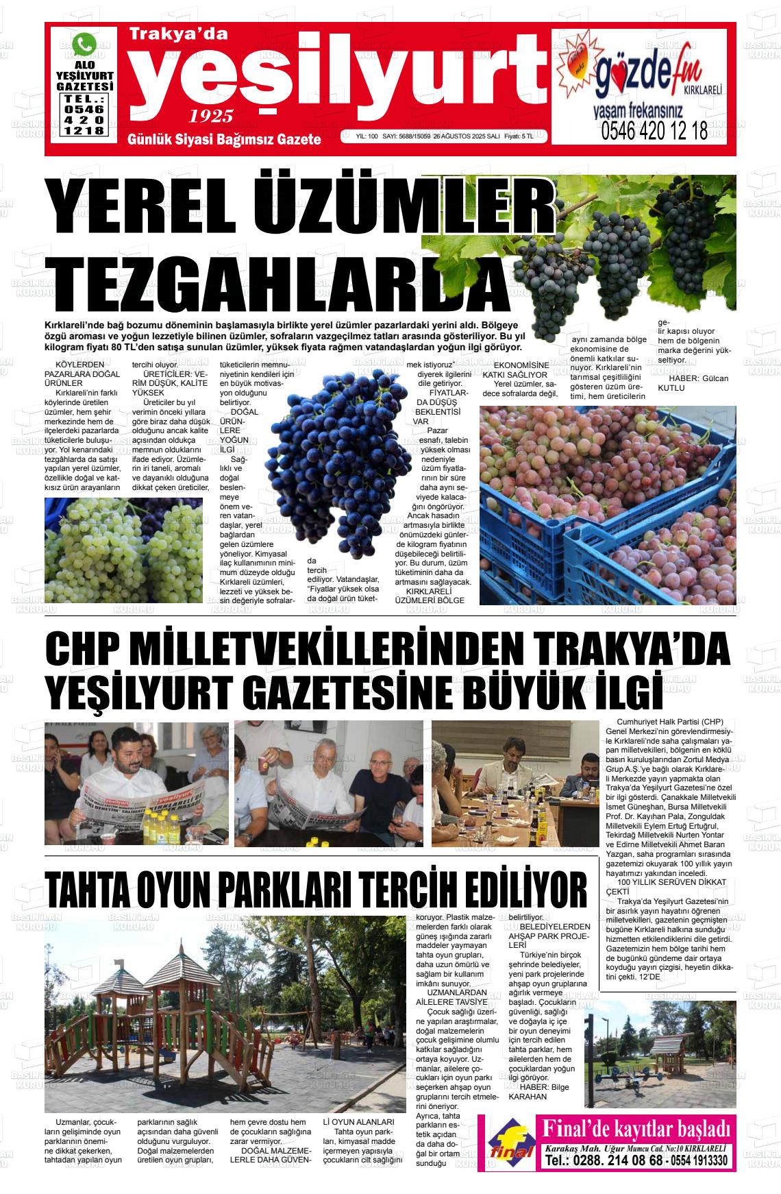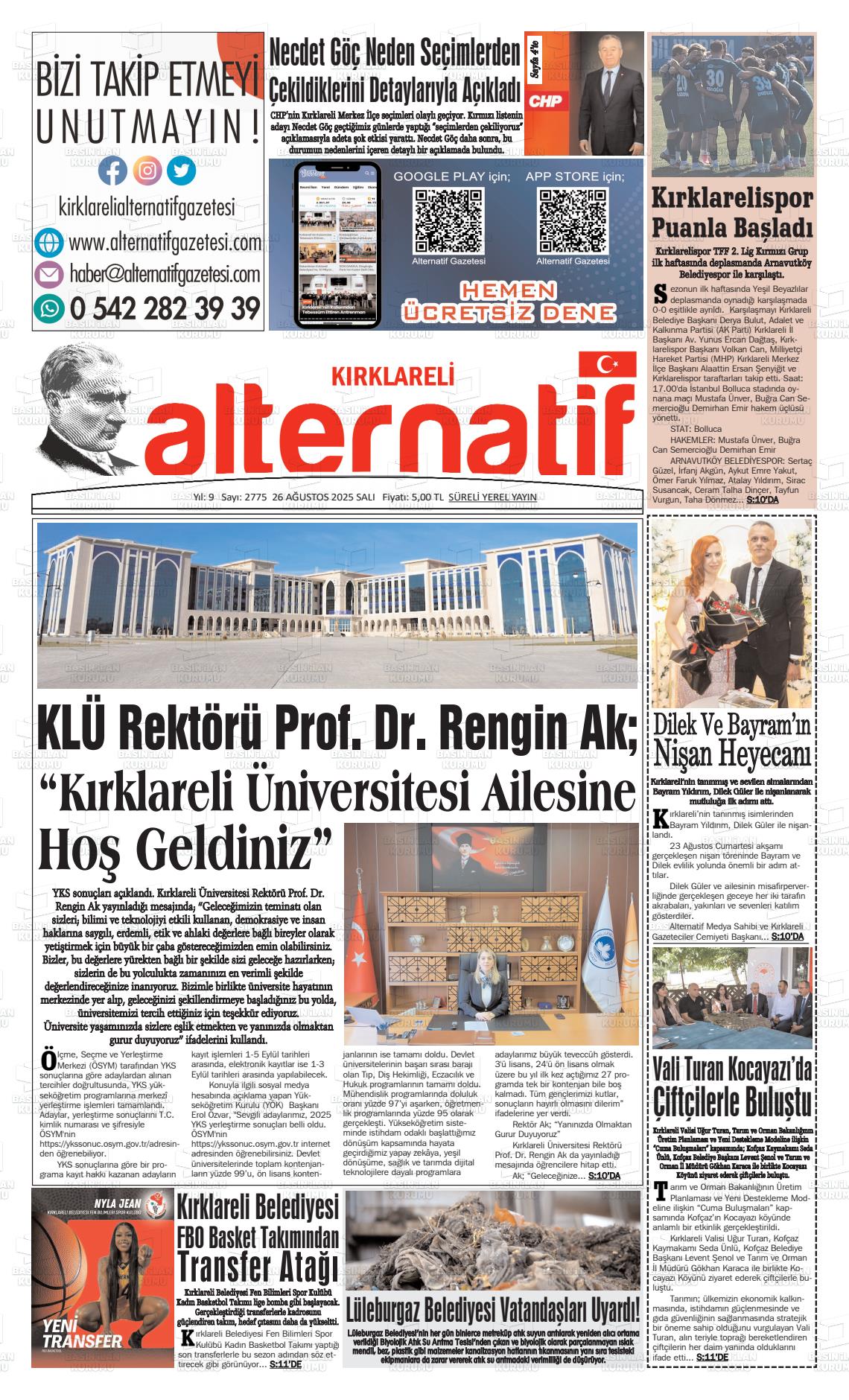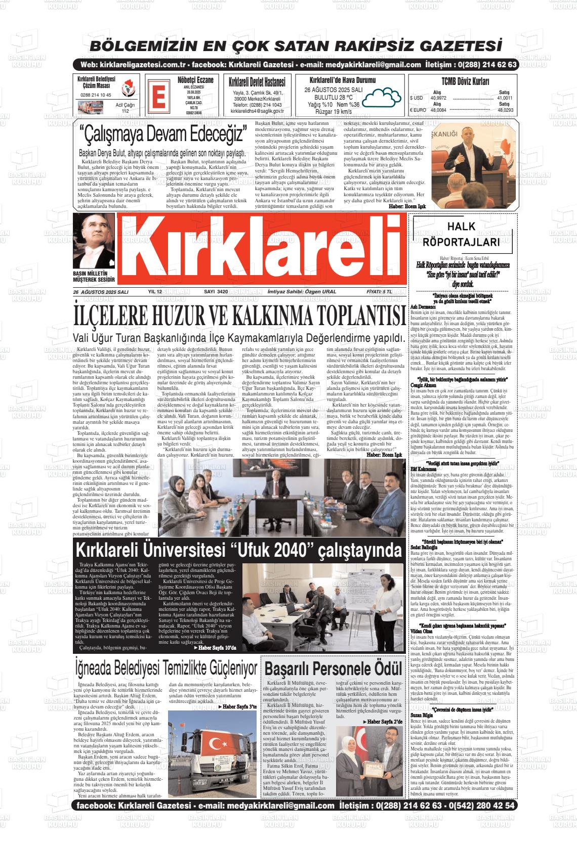 Kırklarelİ Yerel Gazeteleri 27 Ocak 2026, Salı Günü Manşeti