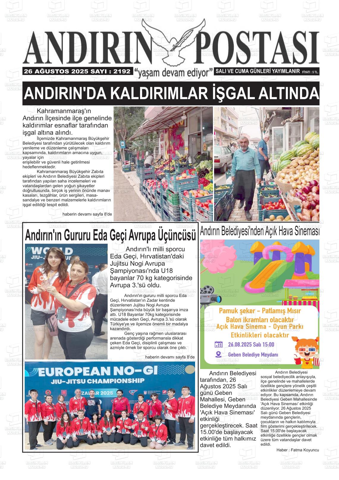 Kahramanmaraş Yerel Gazeteleri 02 Aralık 2025, Salı Günü Manşeti