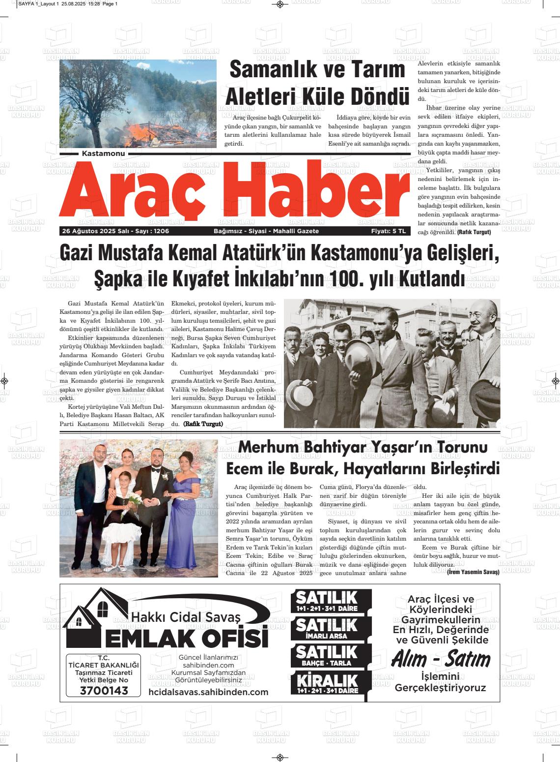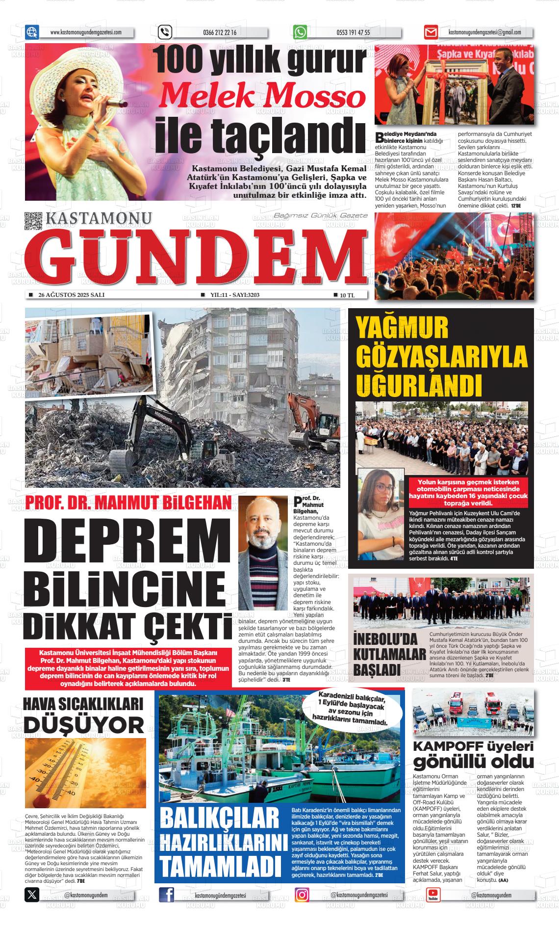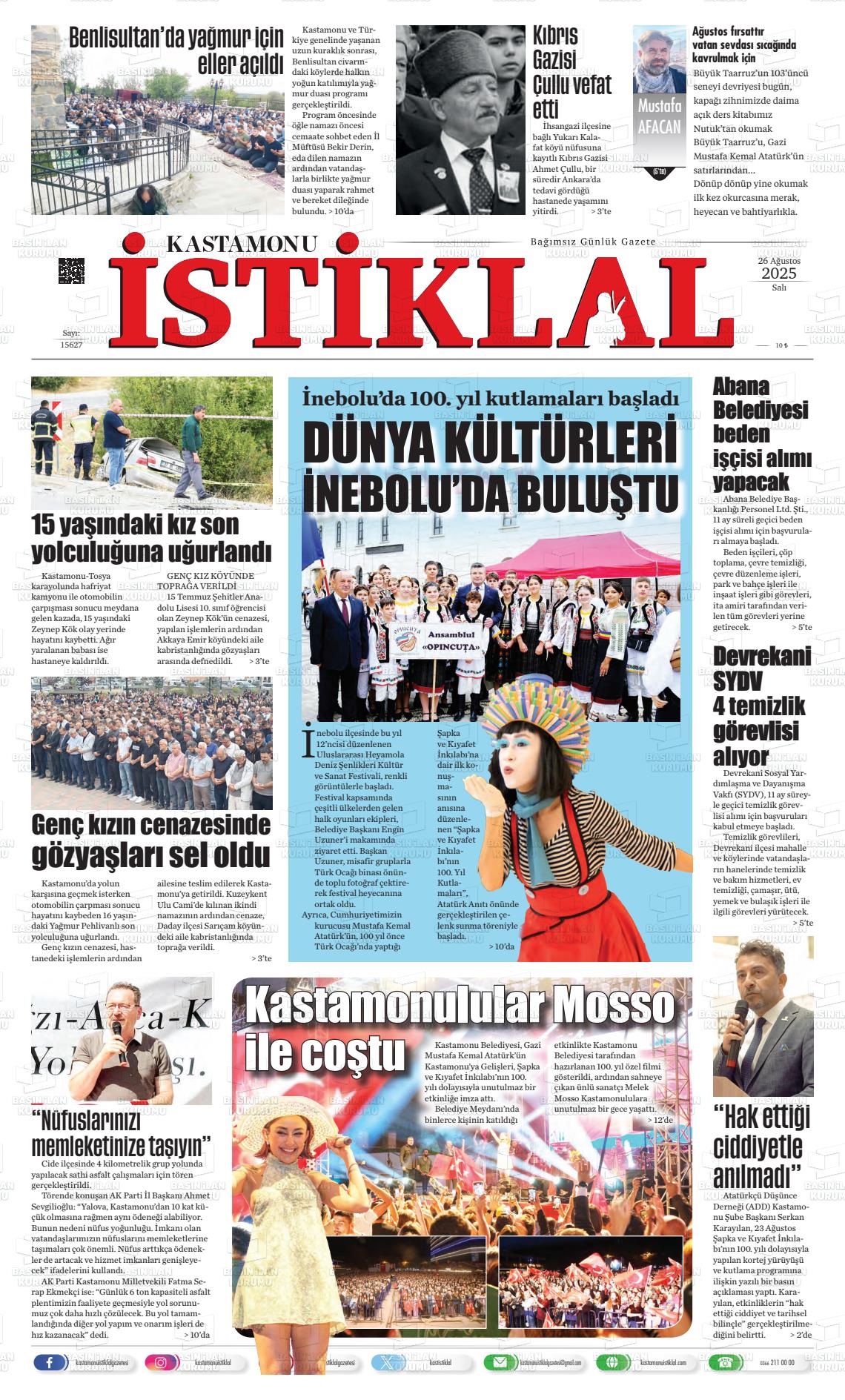Kastamonu Yerel Gazeteleri 27 Ocak 2026, Salı Günü Manşeti