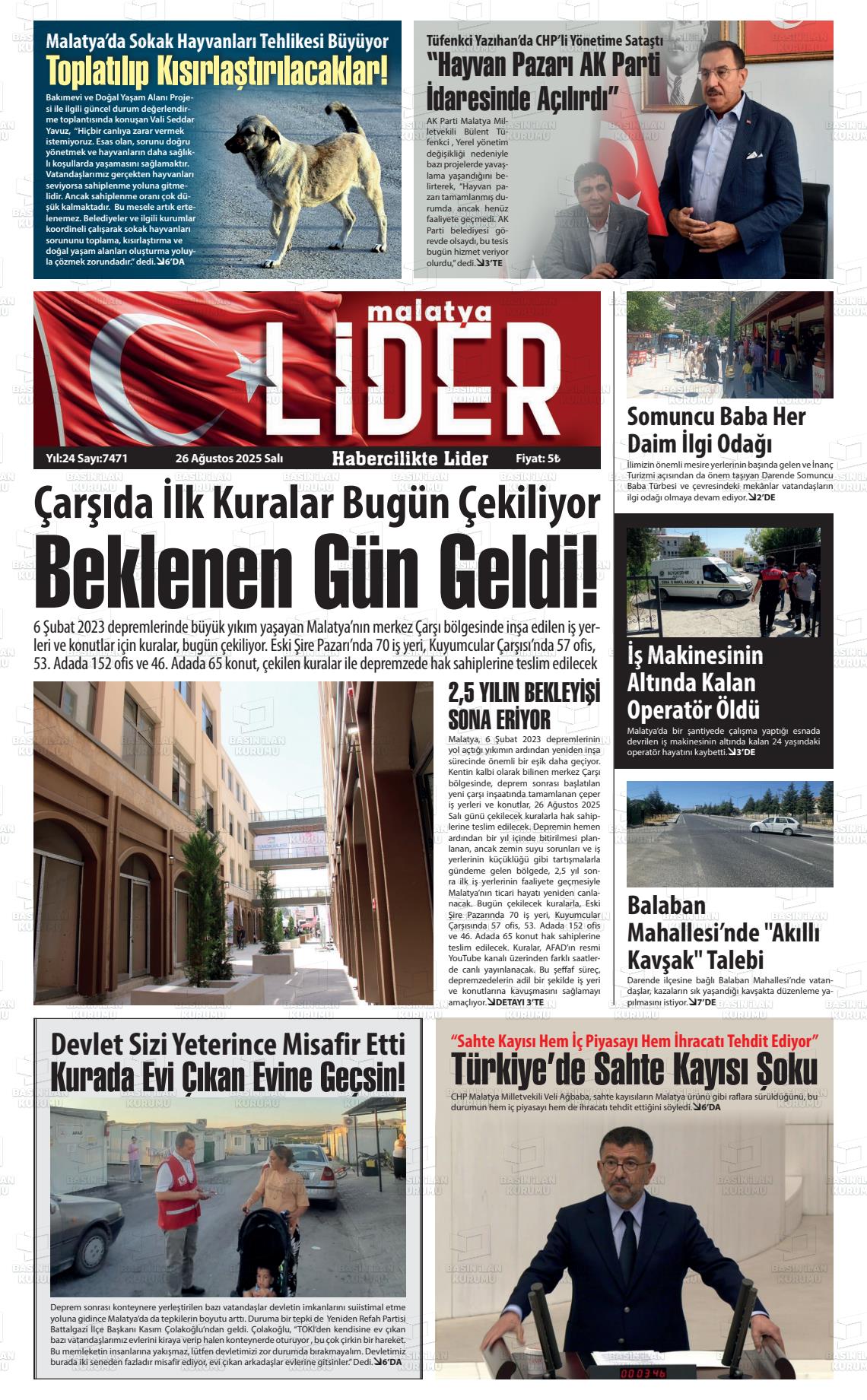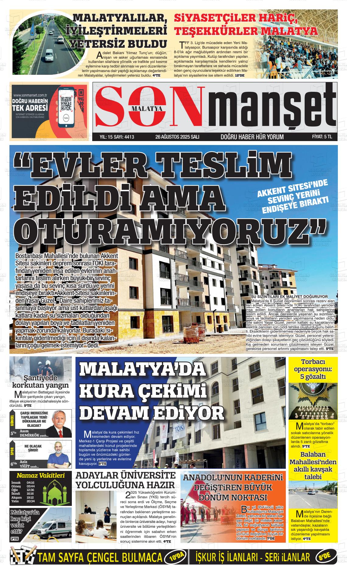 Malatya Yerel Gazeteleri 27 Ocak 2026, Salı Günü Manşeti