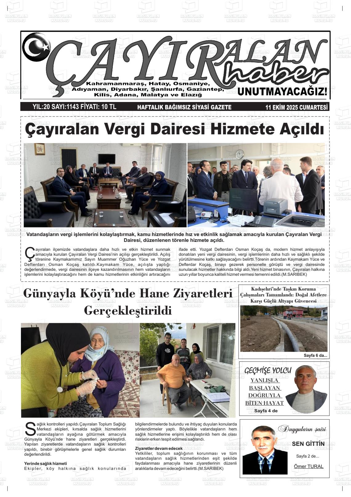 Yozgat Yerel Gazeteleri 11 Ekim 2025, Cumartesi Günü Manşeti