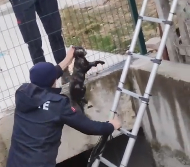 Su kanalına düşen kediyi itfaiye kurtardı